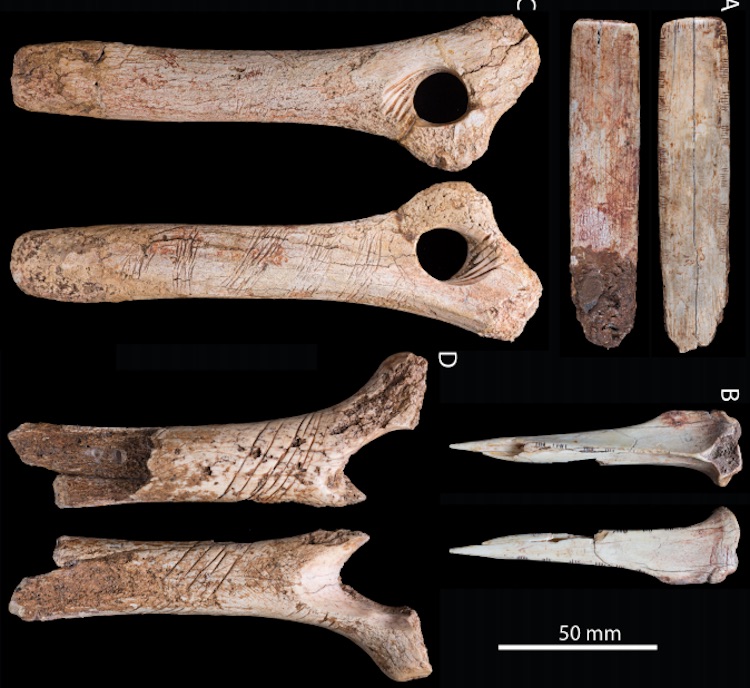 Mağarada bulunan ve üzerinde kesik izleri bulunan insan kemikleri. F: Bello et al 2017