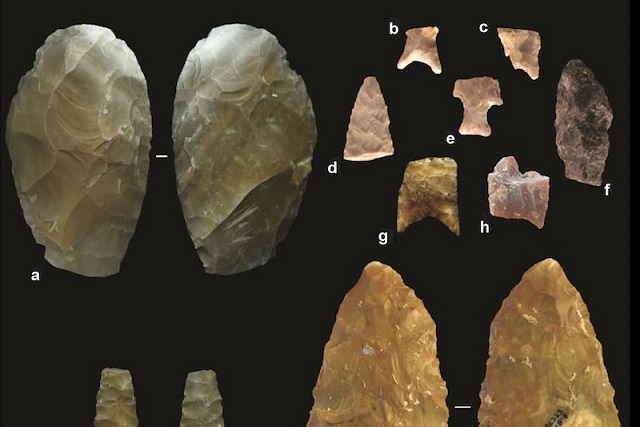 Yeni çalışmanın yazarlarına göre ise artık ABD genelinde 13.000 ile 20.000 yıl öncesine tarihlenen en az 10 yerleşim alanı biliniyor. Bunlardan beşi—Virginia, Idaho, Pennsylvania ve Teksas’ta yer alanlar—öylesine çok sayıda taş alet verdi ki, Clovis kültürü ortaya çıkmadan önce bölgede Amerikan Üst Paleolitiği olarak bilinen bir teknolojik endüstrinin yayılmış olduğunu düşündürüyor. Bu taş alet geleneğinin nereden geldiğini anlamak için araştırmacılar, ilk Amerikalıların muhtemelen 25.000 yıl önce Kuzeydoğu Asya’da yaşamış bir gruptan türediğini gösteren genetik çalışmalara döndü. Bölgenin arkeolojik kayıtlarını taradıklarında, Japonya’nın Hokkaido adasından iki yüzeyli av silahlarının (biface) Amerikan Üst Paleolitiği’ni karakterize eden aletlerle eşleştiğini fark ettiler.