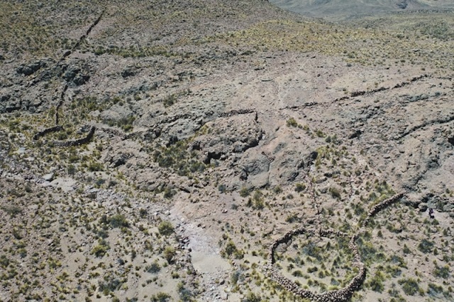 Havadan iki chacu av tuzağı görülüyor. V şeklindeki av tuzakları, çeşitli And toplulukları tarafından avlarını yönlendirmek için kullanılıyordu. C: Adrián Oyaneder