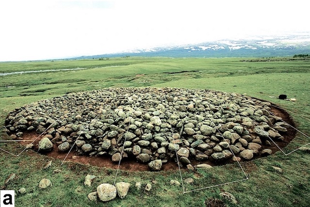 Baga Turgenii Gol’deki bir Pazırık mezarının taş kaplaması kaldırılmadan önceki fotoğrafı. C: J.S. Park vd. 2025