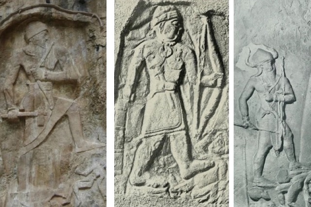 a) Darbend-i Gawr, Irak. b) Darband-i Belula, Irak. c) Naram-Sin, Irak. C: G. Šaffa, 2025