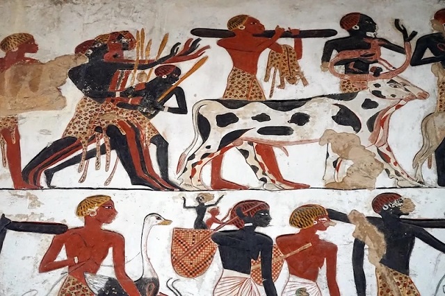 Ekip ayrıca bu dönemde yaşayan Nubialıları betimleyen Mısır kaynaklı antik sanat eserlerini de inceledi. Bazı Nubialıların baş kayışları kullanarak çocuk taşır şekilde betimlendiğini fark ettiler.