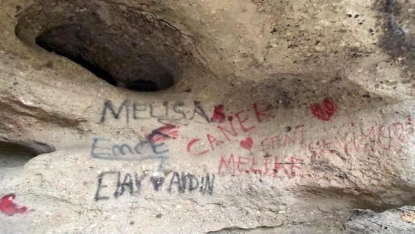 'BU ŞEKİLDE OLMASI ÇOK ÜZÜCÜ'Tarihi alanı gezmeye gelen Yıldıray Efe, "Bu bölgeye çok ziyaretçi geliyor, gerçekten gezilip görülmesi gereken bir yer ama ne yazık ki bazı vatandaşlar, bu alanı kötü bir hale getirmiş durumda. Mağaraların içine girmişler, yemişler, içmişler ve çöplerini bırakıp gitmişler. Buranın çok daha temiz ve nezih olması gerekiyor. Bu şekilde olması çok üzücü. Mağaranın duvarlarına da yazılar yazılmış, kimisi isim yazmış, kimisi sevdiğini yazmış, bunlar hoş değil. Herkesin bilinçli olması gerekiyor" dedi.