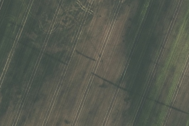 Trabitz yakınlarındaki Roma yürüyüş kampının girişini gösteren hava fotoğrafında, kapıların önünde yer alan hendek ve toprak setten oluşan titulum açıkça görülüyor. C: GeoBasis-DE / LVermGeo ST.