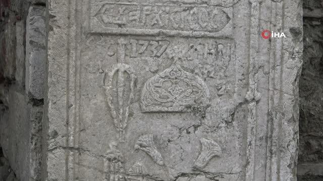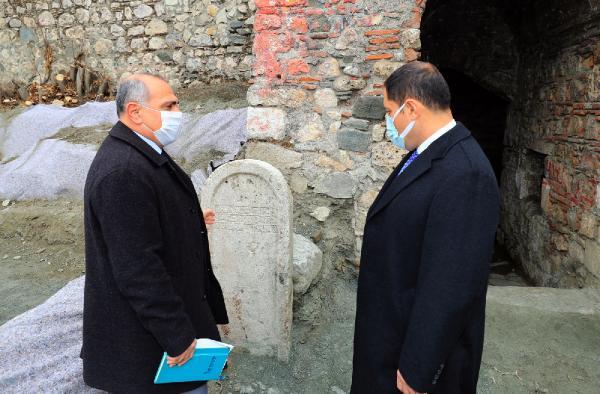 Amasya'da arkeolojik kazı yapılan Venk Ayazması'nda bir rahibe ait olduğu değerlendirilen mezar taşı bulundu.