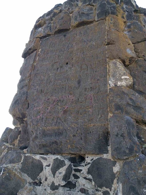 Burada, düz bir taş üzerinde yaklaşık 2 metre yüksekliğinde bir yazıt bulunuyor. Özenle oyulmuş gibi görünse de, yazının dili ve anlamı hala çözülebilmiş değil.