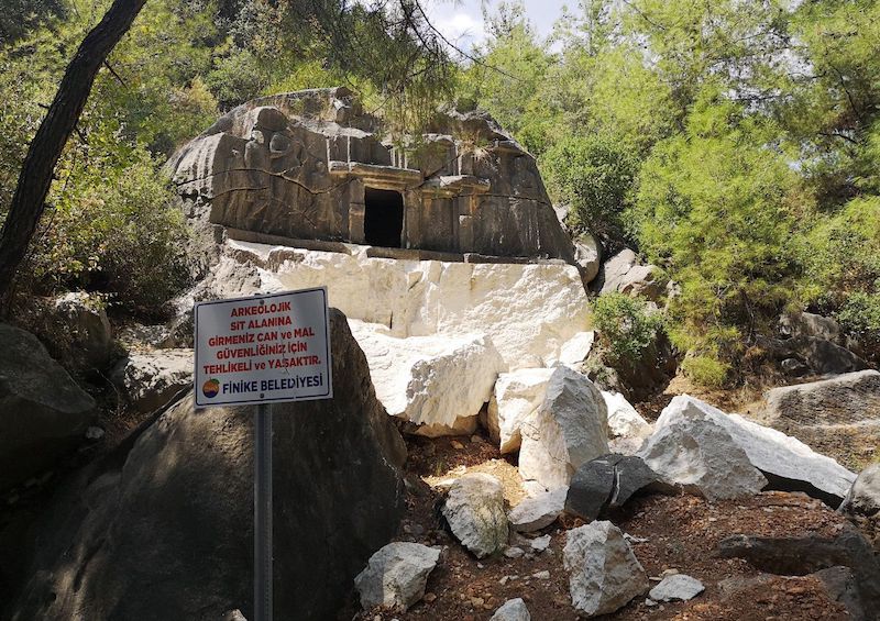 Antalya Finike’de bulunan Likya dönemine ait 2.500 yıllık kaya mezarı, kimliği belirsiz kişilerce el yapımı bombalar ile patlatıldı.