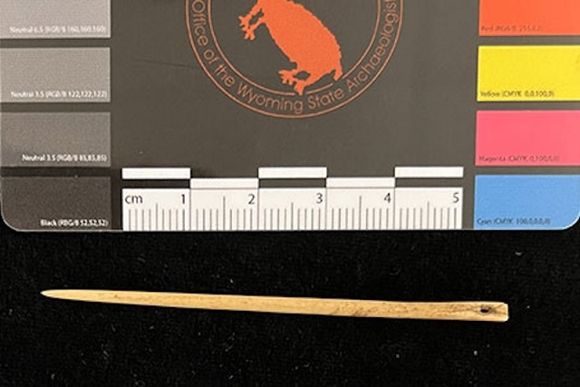 Wyoming’deki bir arkeolojik alandan çıkarılan bu kemik iğne, eski insanların giysi üretmek ve soğuk iklimlerde hayatta kalmak için kullandığı, dünyanın dört bir yanında bulunan kemik iğnelere bir örnek. C: UW Photo