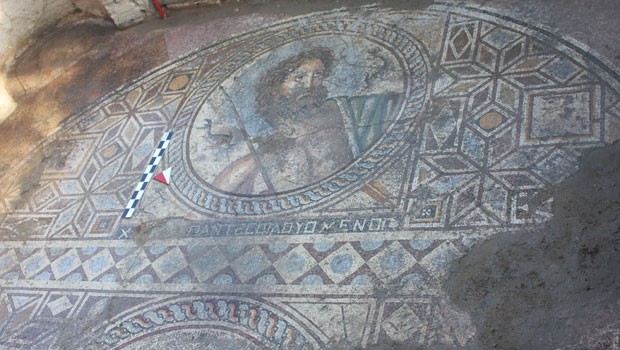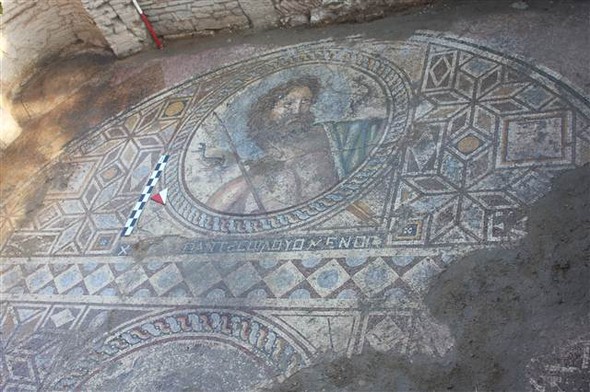 "Yürütülen çalışmalar sonucunda 11,39 metrekarelik alana sahip, iki ana panoya ayrılmış ve bu panolarda dairesel çerçeveler içinde tasvirlerin bulunduğu mozaik bulduk. Güneydoğu yönünde yer alan tasvir tamamen tahrip olmakla birlikte kuzey yönünde yer alan dairesel çerçeve içerinde cepheden tasvirlenen elinde trident (üç dişli yaba), bir omuzunu kapatacak bir örtüsü yer alan Yunan mitolojisinde denizler, depremler ve atlar tanrısı, Kronos ile Rheia'nın oğlu Zeus ve Hadesin kardeşi Roma mitolojisinde Neptün olarak bilinen Poseidon tasviri yer alıyor. Poseidon tasvirin sağında ve solunda yunus balığı figürleri görülmektedir. Mevcut mozaiğin kuzey yönüne doğru kazı çalışmalarının tamamlanmasıyla olası bir metnin yer alması durumunda bu yazıtın anlam kazanacağı düşünülmektedir. Mozaiğin MS 3 ya da 4. yüzyıla tarihlenebileceği düşünülüyor."