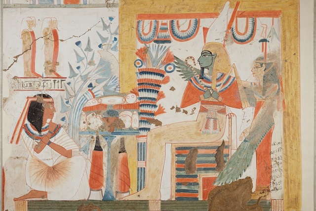 Osiris ve Batı Tanrıçası Önünde Diz Çöken Userhat, Userhat’ın Mezarı. MÖ 1294–1279. C: The Metropolitan Museum of Art.