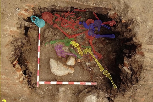 Forumun güneybatı kısmındaki V numaralı odadaki güney sarnıçta insan iskeleti kalıntıları. C: Russeva, V., & Manoilova, L. (2025).