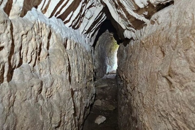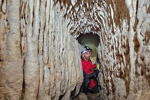 Keşfedilen tünellerden birinde inceleme yapan speleoloji (mağara bilimi) ekibi üyesi. C: Cristiano Ranieri / Roma Metropol Alanı ve Rieti Vilayeti ABAP Müfettişliği