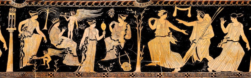 Düğün planları. MÖ 425 dolaylarında bir amfora olan Kadmos Ressamı, onu düğününe hazırlayan görevlilerle çevrili, soldan ikinci taçlı bir gelinin şenlikli bir sahnesini tasvir ediyor. Kanatlı aşk tanrısı Eros hemen arkasında duruyor. Kavanozun diğer tarafındaki sahnede genç bir adam solda bir kadının peşinden koşarken sağda bir başkası kaçıyor.