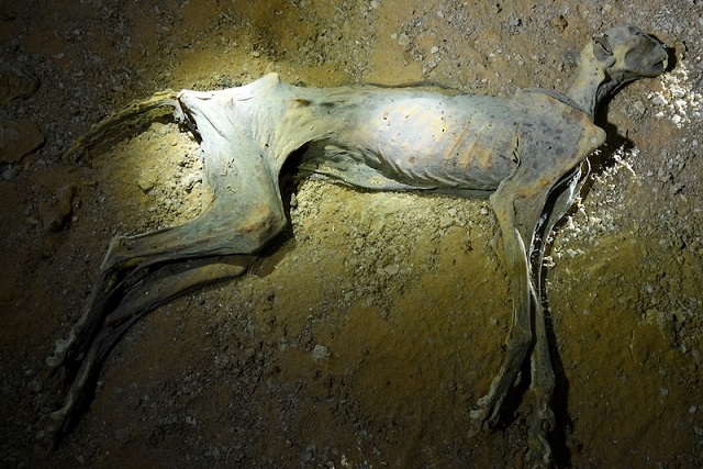 Suudi Arabistan’ın kuzeyindeki bir mağarada bulunan mumyalaşmış çitalardan biri. C: National Center For Wildlife / Saudi Arabia