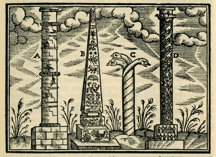 Konstantin Sütunu, Theodosius Dikilitaşı, Yılan Sütunu, Arcadius Sütunu – Salomon Schweigger, Konstantinopolis. Kaynak: Kamu Malı