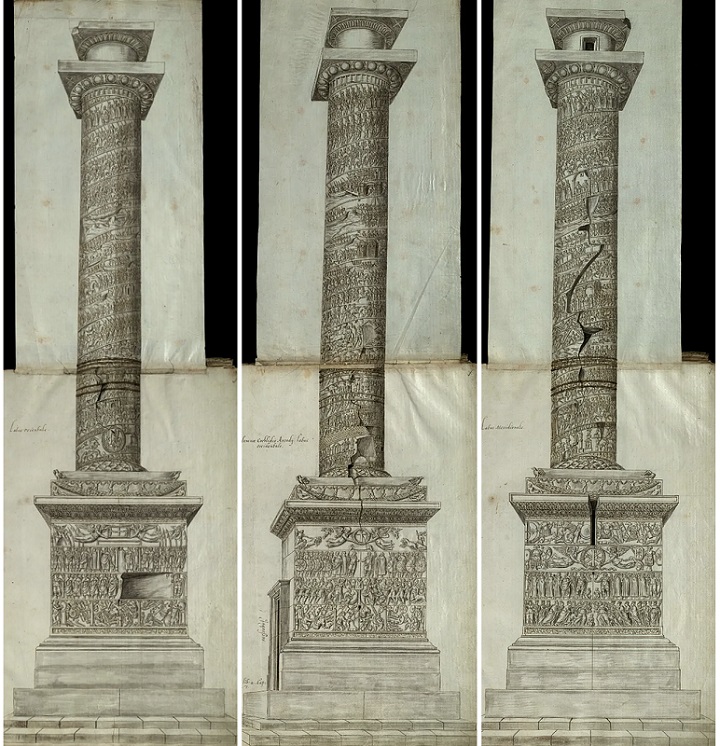 Yüzyıllar boyunca seyahat edenler ve bilginler de sütunun fiziksel ihtişamına dair ayrıntılı tanıklıklar bıraktılar. Fransız gezgin Pierre Gilles, 16. yüzyılda onu ölçtü ve tanımladı, böylece modern arkeolojik çalışmaların temellerini attı. Lambert de Vos'un 1570'lerde yaptığı ve Freshfield Albümü'nde korunan ayrıntılı çizimler, esirleri, zaferleri, senatörleri, askerleri ve şehirlerin kişileştirmelerini tasvir eden kaidenin zengin kabartmalarının nadir görsel kayıtlarını sunmaktadır. Robert de Dreux ve Aubry de La Motraye gibi daha sonraki gözlemciler, anıtın giderek daha kırılgan hale gelen durumunu kaydettiler; ikincisi, çökmesini önlemek için 1711'de ayrılmasından sonra nihayet yıkıldığını bildirdi. Arşiv kanıtları, yapının 18. yüzyılın başlarına kadar ayakta kaldığını ve muhtemelen 1719'da bir depreme yenik düştüğünü göstermektedir.