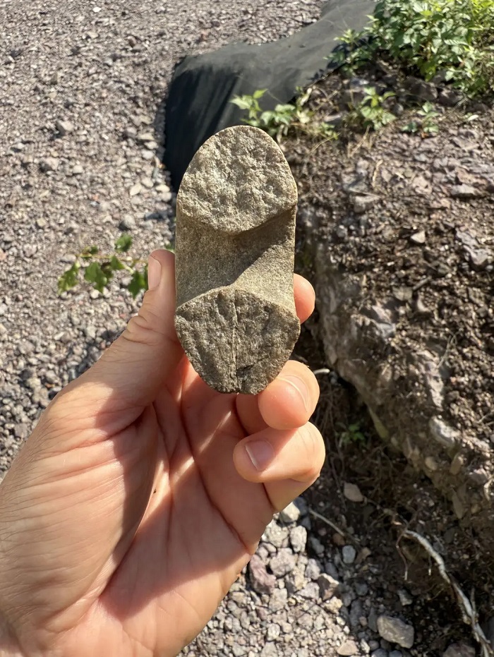 Alanda bulunan en dikkat çekici keşif, esasen bir Taş Devri çekici olan, şaft delikli bir sopanın başının yarısıdır. Sıradan bir kaya parçasının aksine, taş, insan işçiliğinin açık izlerini taşıyordu: Bir zamanlar ahşap bir şaftın takılacağı yere özenle delinmiş bir delik.