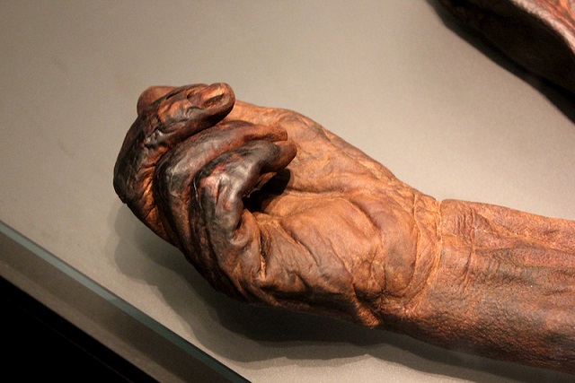 Dublin yakınlarındaki bir turba bataklığında bulunan Demir Çağı cesedine ait bir el.