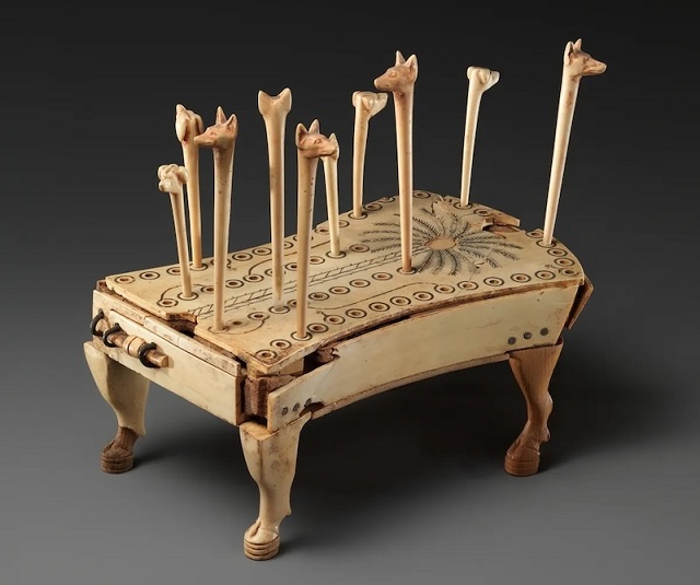 MÖ ikinci binyıldan kalma Teb’te bulunan 58 delikli tahta örneği. Piyonlara karışık bir şekilde bazen tazı, bazen de çakal kafası oyulmuş. C: Metropolitan Museum of Art via Wikimedia Commons