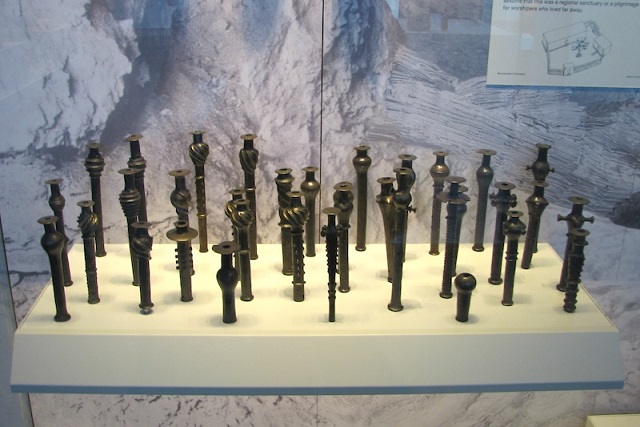 Nahal Mishmar’daki mağarada bulunan, taçlara benzeyen silindirik nesneler. C: Wikimedia Commons