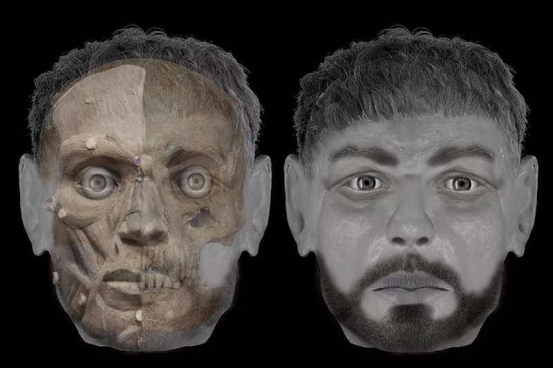 Araştırmacılar, kurbanın artık yok olan yumuşak dokularının kılıç darbelerinden nasıl etkilendiğini incelemek için kurbanın yüzünün bir rekonstrüksiyonunu oluşturdular.