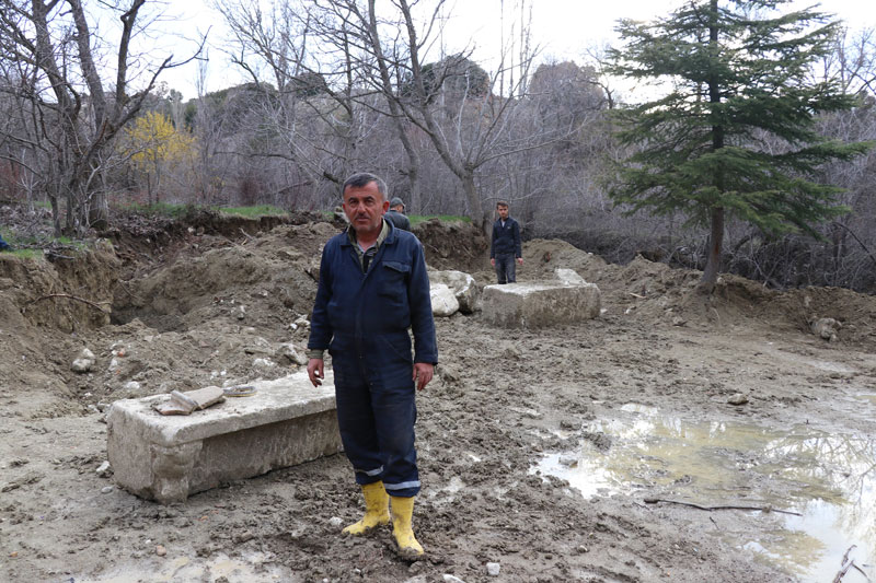 Abdullah Candan, gazetecilere yaptığı açıklamada, tarlasını sürerken traktörünün pulluğuna büyük bir taşın takıldığını söyledi.