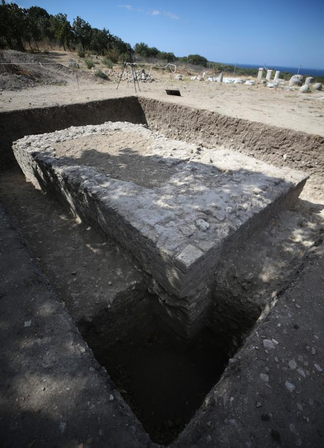 Çanakkale'nin Ezine ilçesinde denize yakın bir bölgedeki Alexandria Troas Antik Kenti'nde devam eden kazılarda, 2 bin yıllık altar (adak adanan ve kurban kesilen dini yapı, sunak) gün yüzüne çıkarıldı.