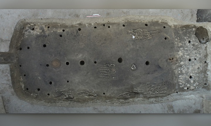 Çin’deki Honghe’de başsız iskeletlerin bulunduğu toplu mezar. C: Qian Wang/Texas A&M University School of Dentistry