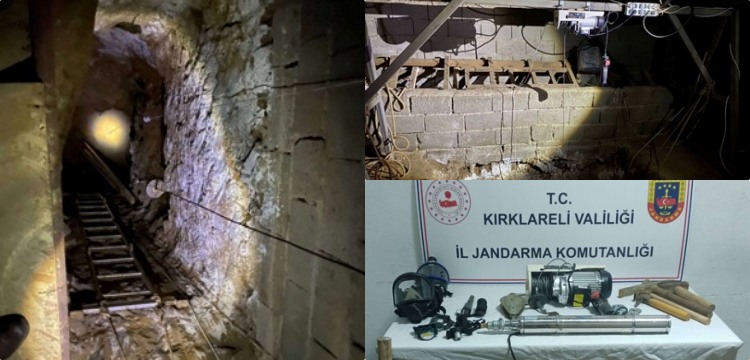 Kırklareli'nde define aradıkları evin zemininde 40 metre derinliğinde çukur kazan 5 defineci, kazdıkları çukura asansör sistemi kurdular. Jandarmalar, madenci tünellerini andıran çukurda yaptıkları aramada el dedektörü, gaz maskesi, dalgıç pompa ile kazı malzemeleri ele geçirdiler.