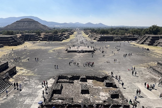 Antik Meksika kenti Teotihuacan’daki geniş açık meydanlar ve caddeler, insanların daha fazla söz hakkına sahip olduğu bir toplumu gösteriyor. C: Linda Nicholas, Field Museum.