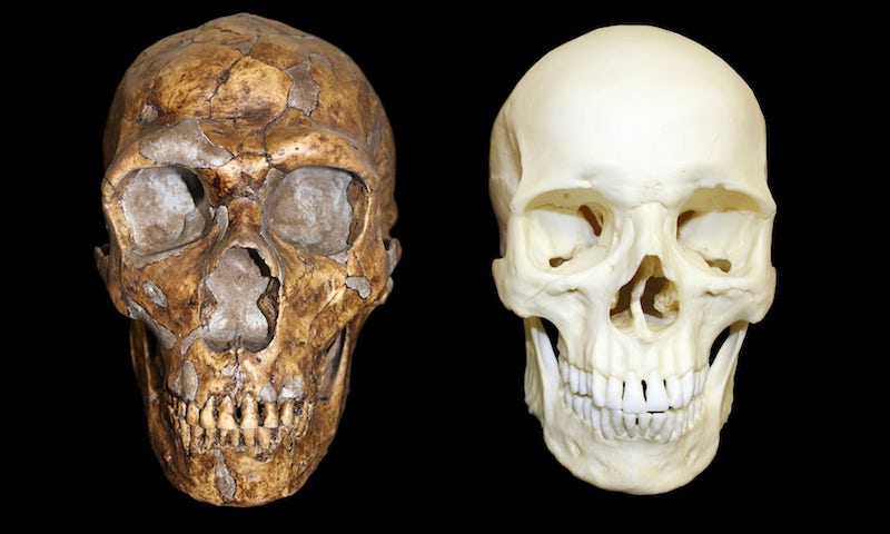 Neandertal(solda) ve modern insan kafatası örnekleri. C: Sabena Jane Blackbird/Alamy