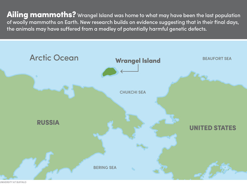 Vrangel adası biraz tuhaf bir yer. Yünlü mamutların büyük çoğunluğu geç buzul çağı sonunda, yaklaşık olarak 10.500 yıl önce yok oldu. Ancak deniz seviyesinin yükselmesinden dolayı bir yünlü mamut popülasyonu Vrangel adasında kaldı ve yaklaşık olarak 3.700 yıl öncesinde, orada yok olana kadar yaşamaya devam ettiler. Yeni araştırmaya göre bu popülasyon, o kadar izole kalmış ve o kadar küçüktü ki, genetik çeşitliliği çok azdı.