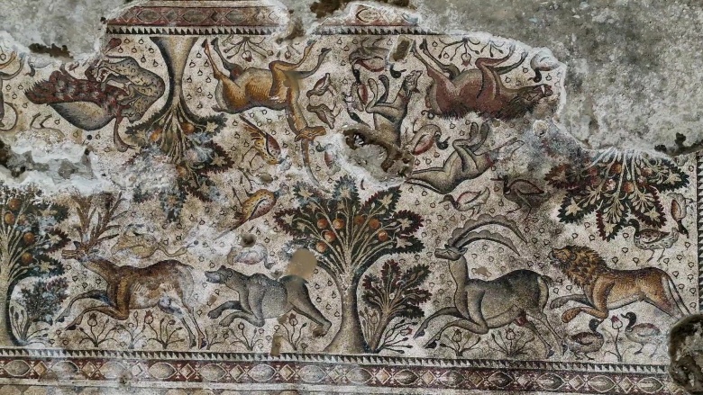 Kazılarda ortaya çıkarılan erken Bizans ya da Roma dönemine ait olduğu sanılan ve yaklaşık 84 metrekare olduğu belirlenen taban mozaiğinin üzerinde devam eden çalışmalarda Anadolu leoparı, kurt, domuz, dağ keçisi, geyik, tazı ve sülün gibi hayvanların resmedildiği anlaşıldı.