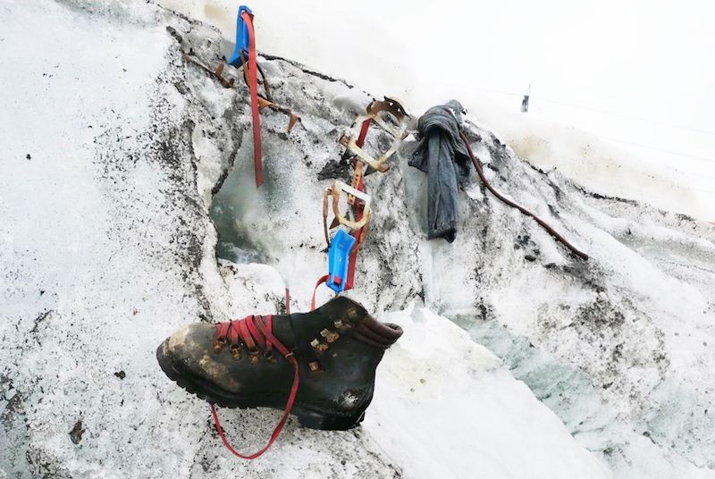 1986’da İsviçre’deki Theodul Buzulu’nda yürüyüş yaparken kaybolan bir Alman dağcıya ait bot. C: Reuters