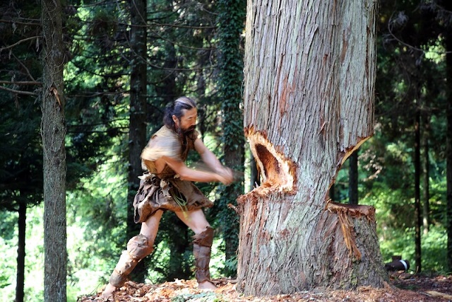 Ekip, döneme ait replik aletler ve gerçek bir ağaç kullandı. C: Kaifu et al. 2025.
