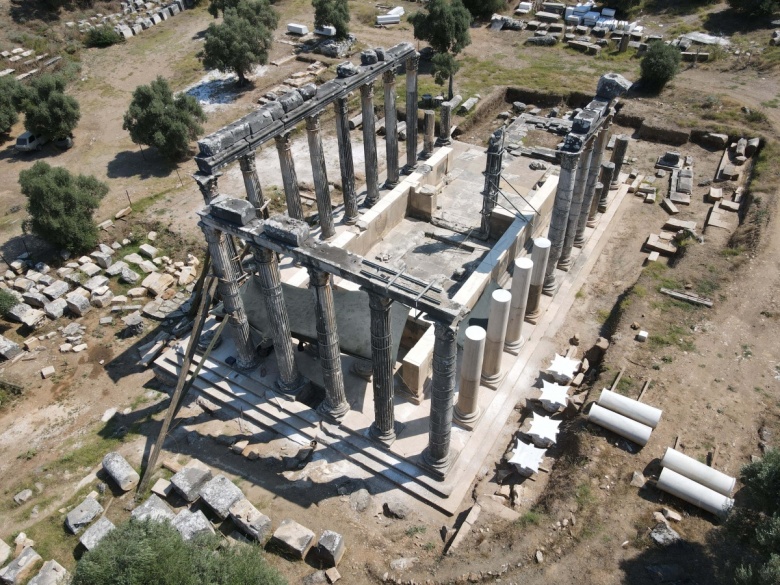 Euromos Antik Kenti'ndeki Zeus Lepsynos Tapınağı yeninden ayağa kaldırılıyor