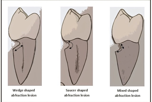 Modern insan dişlerinde abfraksiyon lezyonlarının nasıl göründüğüne dair bir çizim. C: Wikimedia Commons