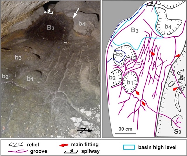 Mağara tabanındaki oluklar birbirine benzese de, bazılarında suyun akışını yönlendirmek için kasıtlı olarak şekillendirildiğine dair işaretler var. C: Dr Anthony Milnes
