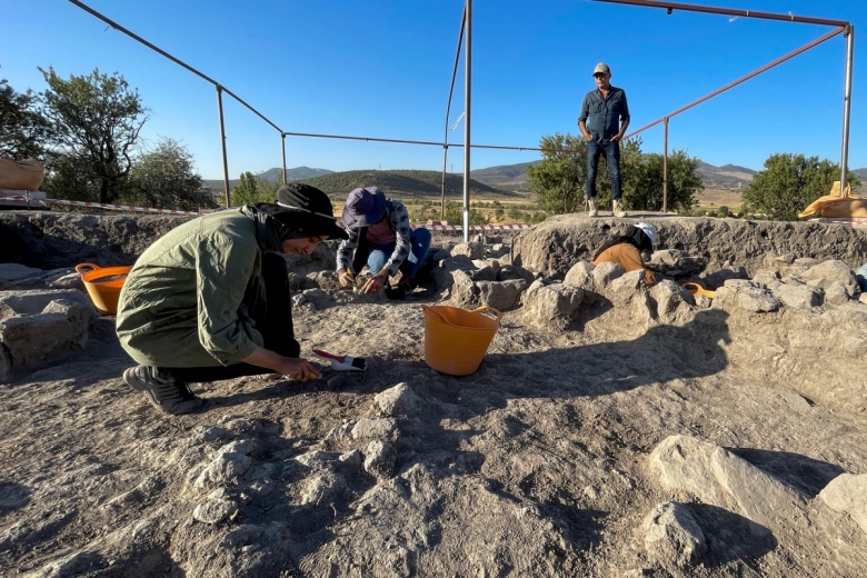 "Höyüğün en üst kotunda yapılan kazılarda açığa çıkan taş örgülü duvarlardan Demir Çağı (Milattan önce 1200-330) mimari yapısını ortaya çıkardığımızı düşünüyoruz. Bu mimari yapı içinde özellikle orta Demir Çağı'nın karakteristik seramiklerini tespit ettik. Bunların dışında çeşitli pişmiş toprak eserler ve aletleri de açığa çıkardık. Söz konusu yapının bir kısmının depolamaya yönelik kullanıldığı bu alandan çıkan büyük pithos (büyük saklama kabı) parçalarından anlaşılmaktadır. Yapının diğer kısmında genellikle dokumaya yönelik kullanıldığını bildiğimiz çok sayıda tezgah ağırlıkları ve ağırşak (dokumada kullanılan alet) bulduk. Bu da burada olası bir dokuma atölyesi olduğunu düşündürüyor. Söz konusu dokuma için gerekli yünün elde edilmesi ise burada yaşayan insanların küçükbaş hayvanlara sahip olduğu şeklinde değerlendirilebilir. Kazılarda açığa çıkan küçükbaş hayvan kemikleri de bu düşüncemizi desteklemektedir."