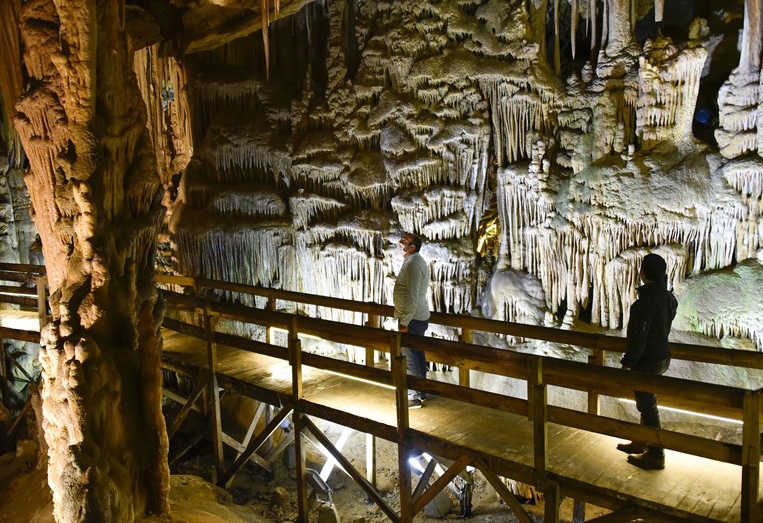 Sarkıt ve dikit yoğunluğu ile tavan yüksekliği açısından dünyanın sayılı mağaraları arasında gösterilen Karaca Mağarası'na, Kovid-19 tedbirleri kapsamında aynı anda 20'den fazla kişi kabul edilmiyor.