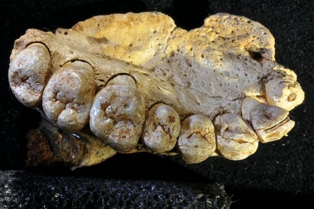 Misliya Mağarası’ndan 185.000 yıllık insan çene kemiği fosili. C: Gerhard Weber, Viyana Üniversitesi