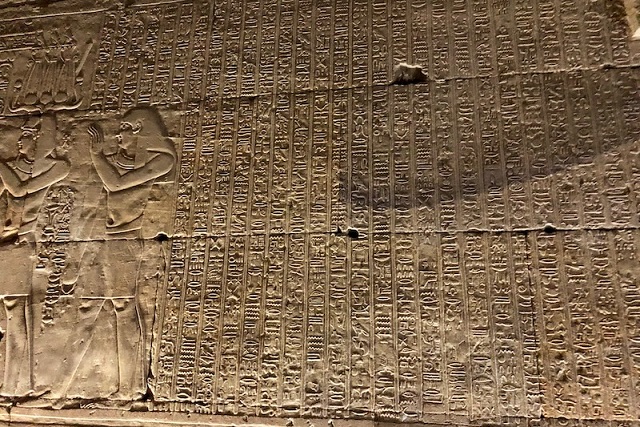 Mısır, Edfu, Horus Tapınağı’ndaki hiyeroglif metin. C: Wikimedia Commons