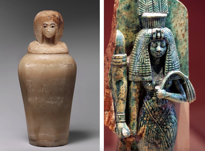 KV55 koleksiyonundan kanopik kavanoz ve Kraliçe Tiye Heykeli.