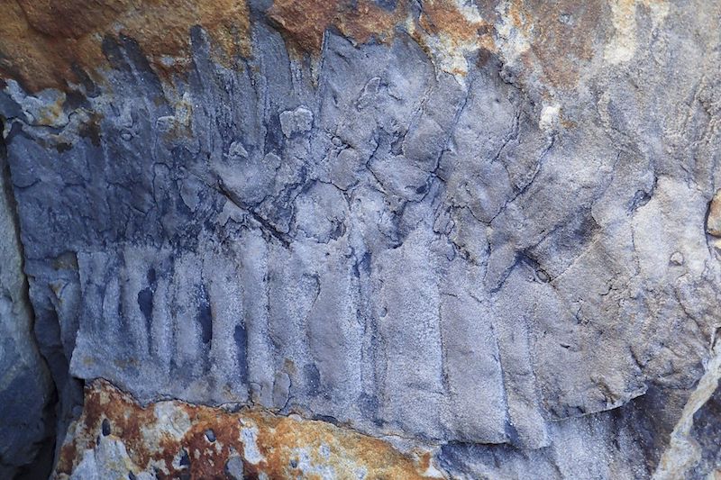 Dev bir kırkayağa ait bu büyük fosil, Howick’teki Northumberland sahilinde sarp bir kayalık parçasının kıyıya düşmesinden sonra tesadüf eseri bulundu.