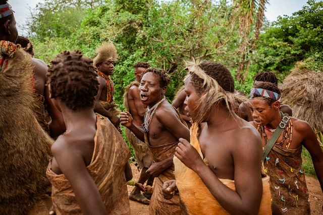 Tanzanya’da çalılıkta dans eden avcılar. C: Wikimedia Commons