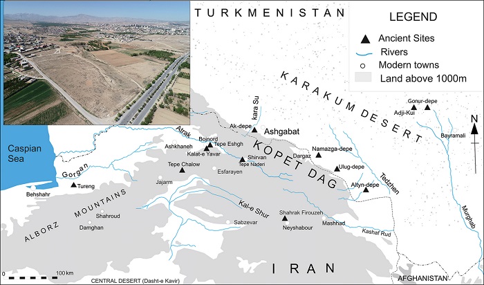Bu alanın coğrafi konumu özellikle önemlidir. İran'ın kuzeydoğusu, tarihsel olarak İran platosunu Orta Asya'nın vaha medeniyetleri ve daha kuzeydeki bozkır bölgeleriyle bağlayan doğal koridorlar boyunca uzanmaktadır.