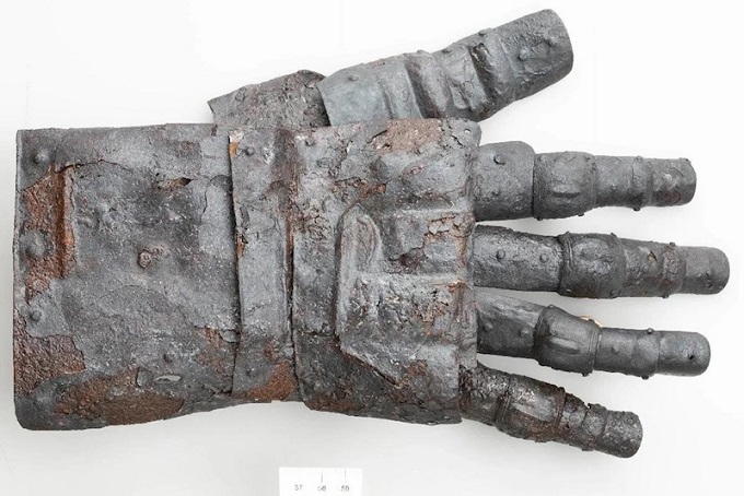 Sağ ele giyilen dört katlı parmak bölmelerine sahip zırh eldiveni, İsviçre’nin geniş Orta Çağ kale komplekslerinden biri olan Kyburg Kalesi’nin bitişiğindeki kazılar sırasında ortaya çıkarıldı. Eskiden Chuigeburch olarak bilinen kale, Orta Çağ’da çok önemli bir rol oynamıştı.