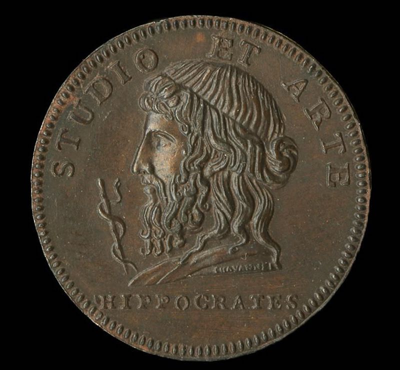Hippocrates büstünü ve Yunan tıp tanrısı Asklepios’un sembolü olan bir sopanın etrafına dolanmış bir yılanı gösteren bronz madalyon. Fransa,1789. C: The Trustees of the British Museum