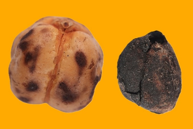 Bir leblebi ve yanında 4.000 yıllık nohut kalıntısı.