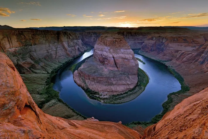 Il y a cinq millions d'années environ, le fleuve Colorado a sculpté cet escarpement de gré, le bien nommé Horseshoe Bend (en français, la boucle du fer à cheval), près de l'actuelle ville de Page, en Arizona.